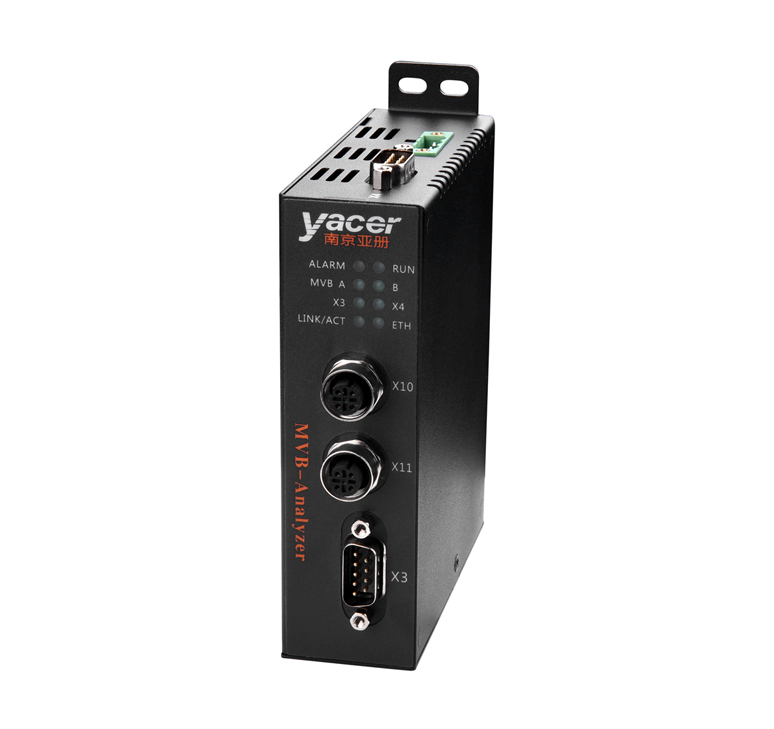 亚册MVB-Analyzer协议分析仪,提供1x MVB接口、2x以太网接口、以及2x扩展接口,能够采集列车通信总线的MVB帧、WTB帧、同步HDLC帧、CAN帧、UART串口数据,通过以太网接口发送给计算机。